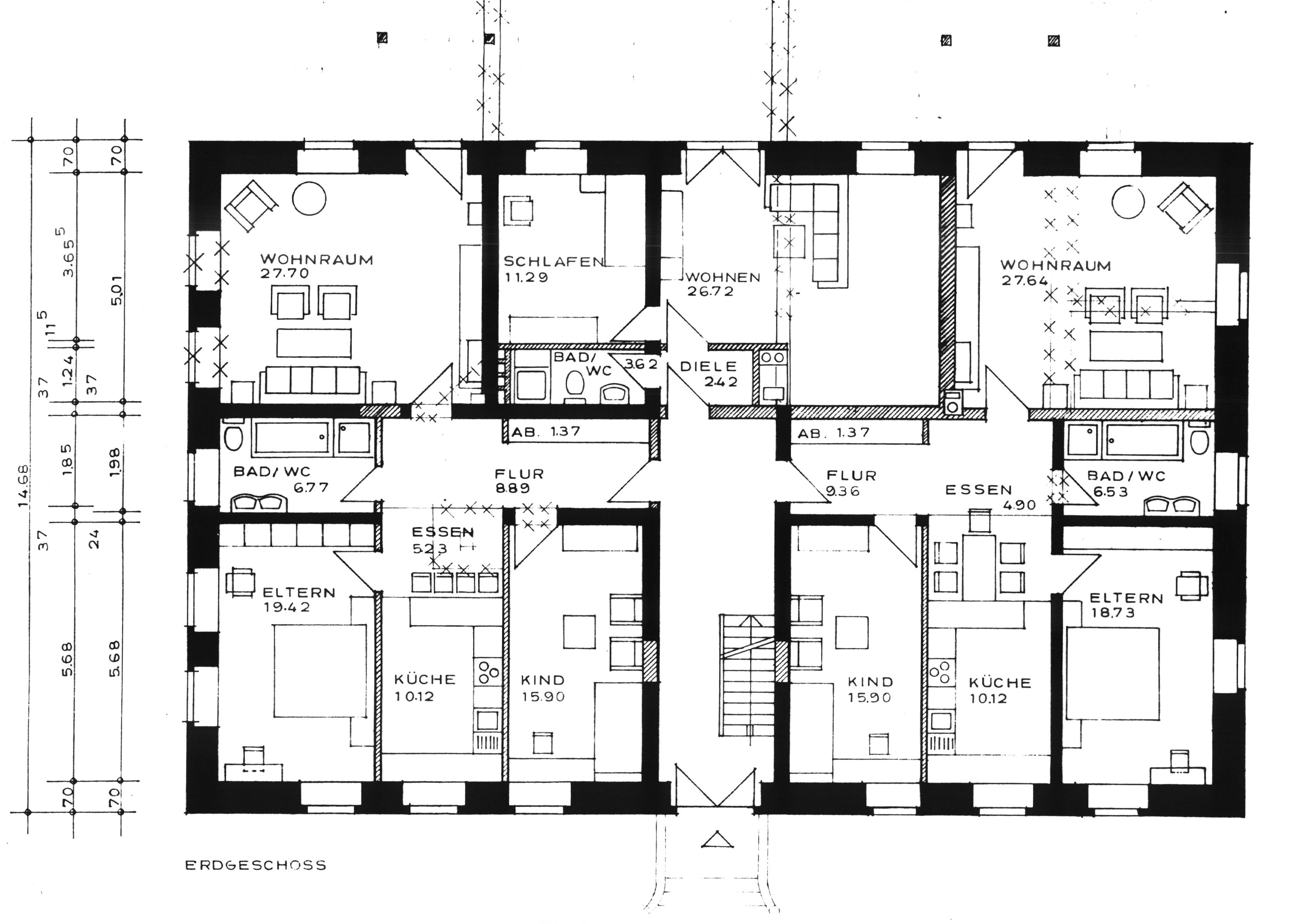 entstanden 7 moderne Wohnungen, alle mit Blick nach Süden auf den Garten